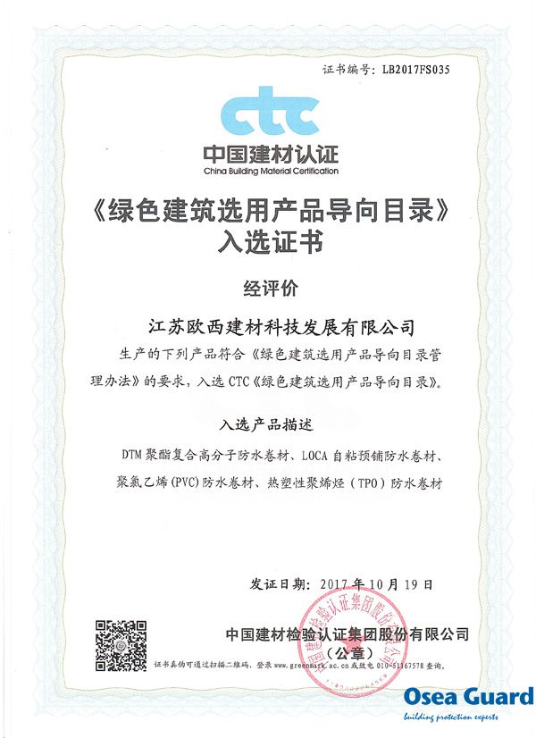 近日,歐西家建科四款產(chǎn)品“DTM聚酯復(fù)合防水卷材”、“LOCA自粘預(yù)鋪防水卷材”、“聚氯乙烯(PVC)防水卷材”、“熱塑性聚烯烴(TPO)防水卷材”獲得國(guó)家建筑材料測(cè)試中心頒發(fā)的《綠色建筑選用產(chǎn)品證明商標(biāo)準(zhǔn)用證》,并經(jīng)中國(guó)建材檢驗(yàn)認(rèn)證集團(tuán)評(píng)價(jià)成功入選《綠色建筑選用產(chǎn)品導(dǎo)向目錄》。 隨著推廣綠色建筑上升為國(guó)家戰(zhàn)略,綠色建材的評(píng)價(jià)標(biāo)準(zhǔn)、綠色建筑的選材技術(shù)規(guī)范及建材產(chǎn)品評(píng)價(jià)認(rèn)定等問題成為行業(yè)焦點(diǎn)。為促進(jìn)綠色建材行業(yè)發(fā)展,引導(dǎo)綠色建筑選用綠色建材,國(guó)內(nèi)具備建材產(chǎn)品綜合檢驗(yàn)?zāi)芰Φ臋z測(cè)機(jī)構(gòu)——國(guó)家建筑材料測(cè)試中心,經(jīng)中華人民共和國(guó)工商行政管理總局商標(biāo)局注冊(cè)了“綠色建筑選用產(chǎn)品”證明商標(biāo)。該證明商標(biāo)是用于證明建材產(chǎn)品的性能符合綠色建筑功能需求的標(biāo)志,受法律保護(hù)。 綠色節(jié)能之路是建筑行業(yè)的必然發(fā)展趨勢(shì),歐西建科始終堅(jiān)持“低碳生活,從歐西開始”,踐行“低碳、環(huán)?!钡纳罾砟?,堅(jiān)持做匹配綠色建筑的高品質(zhì)產(chǎn)品。此次獲得《綠色建筑選用產(chǎn)品證明商標(biāo)準(zhǔn)用證》,是行業(yè)內(nèi)權(quán)威的國(guó)家建筑材料測(cè)試中心對(duì)歐西建科產(chǎn)品質(zhì)量的認(rèn)可。 |
