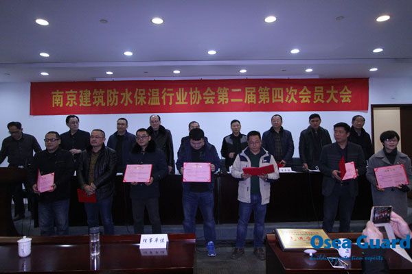 2017年2月25日上午,南京建筑防水保溫行業(yè)協(xié)會第二屆第四次會員大會在南京金夢都賓館隆重召開。南京防水保溫行業(yè)協(xié)會會員代表共150人參會,秘書長常大軍主持會議。 會上,吳慶彪會長向大會做2016年度年暨第二屆理事會工作總結(jié),會議分別對2016年行業(yè)先進企業(yè)、先進個人和優(yōu)秀論文頒發(fā)榮譽證書和獎牌。 會議選舉通過產(chǎn)生了第三屆協(xié)會理事會成員,協(xié)會會長、副會長、秘書長等人員,江蘇歐西建材科技發(fā)展有限公司王洪波總經(jīng)理被選舉為南京建筑防水保溫行業(yè)協(xié)會副會長。 |