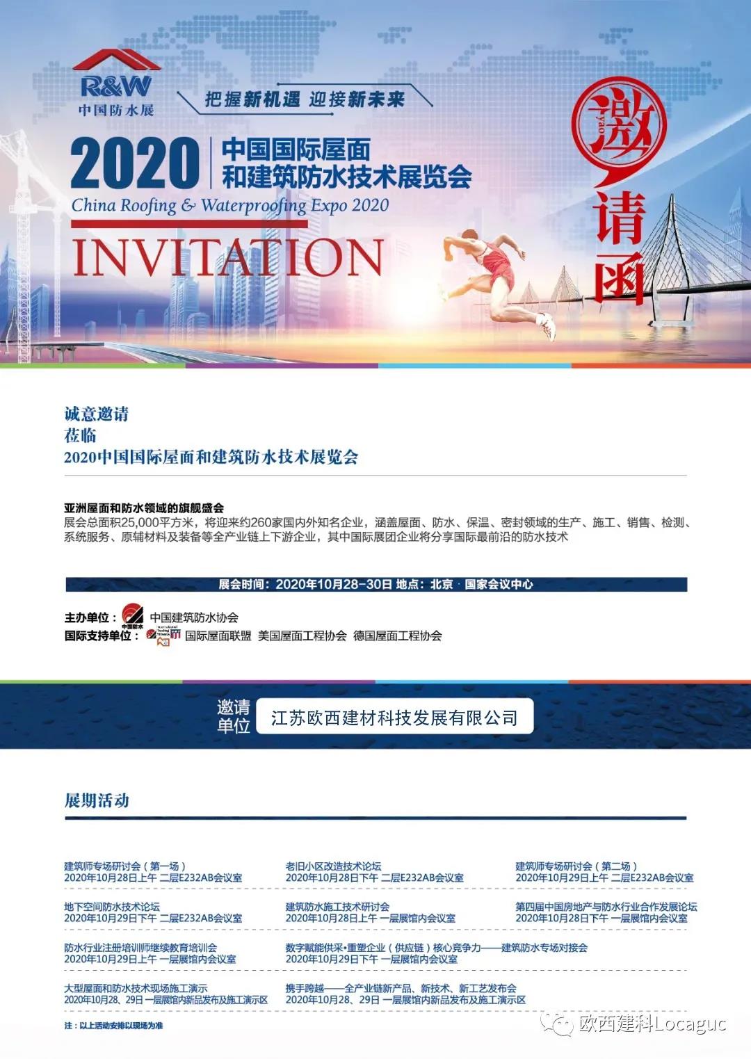 不平凡的2020年,在歷經(jīng)漫長(zhǎng)考驗(yàn)后,由中國建筑防水協(xié)會(huì)主辦的2020中國國際屋面和建筑防水技術(shù)展覽會(huì)將如期于10月28日-30日在北京國家會(huì)議中心舉辦。 歐西建科此次展位號(hào)為:B區(qū)406展位,歡迎各界朋友前來參觀交流,也預(yù)祝2020中國防水展圓滿成功,希望本屆展會(huì)向社會(huì)展示防水行業(yè)疫情防控、復(fù)工復(fù)產(chǎn)及行業(yè)發(fā)展取得的顯著成效,呈現(xiàn)后疫情時(shí)期防水行業(yè)勇于面對(duì)困難、不斷實(shí)現(xiàn)突破的整體風(fēng)貌,助力企業(yè)把握新機(jī)遇,迎接新未來! |