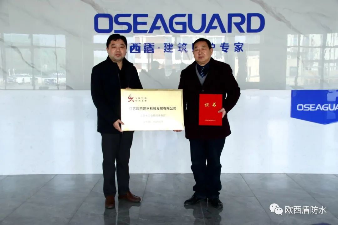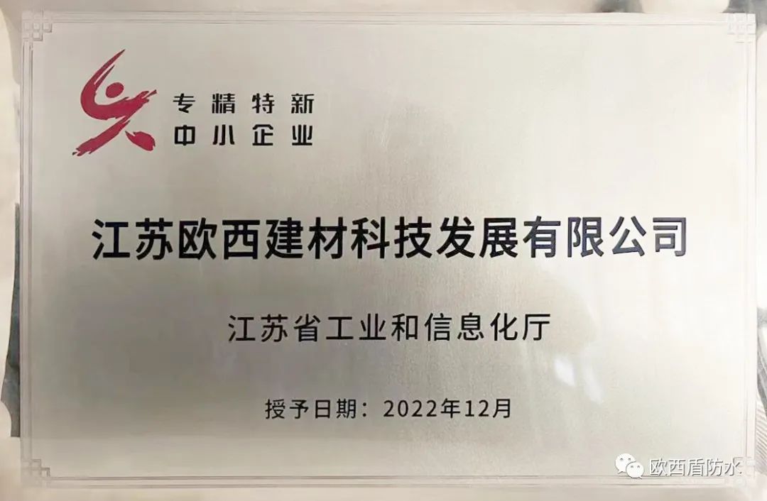 歐西盾防水成功通過2022江蘇省“專精特新” 中小企業(yè)認定