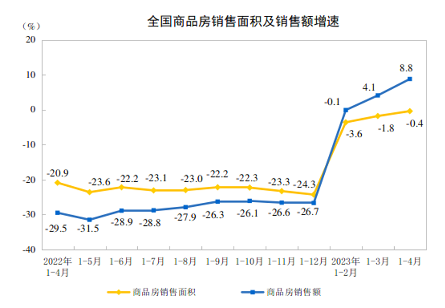 二、商品房銷(xiāo)售和待售情況4月末,商品房待售面積64487萬(wàn)平方米,同比增長(zhǎng)15.7%。其中,住宅待售面積增長(zhǎng)15.4%。