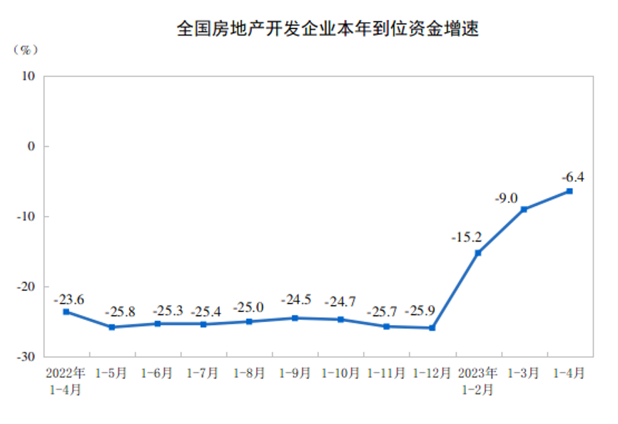 1-4月份,房地產(chǎn)開(kāi)發(fā)企業(yè)到位資金45155億元,同比下降6.4%。其中,國(guó)內(nèi)貸款6144億元,下降10.0%;利用外資12億元,下降69.6%;自籌資金12965億元,下降19.4%;定金及預(yù)收款15925億元,增長(zhǎng)4.0%;個(gè)人按揭貸款8222億元,增長(zhǎng)2.5%。